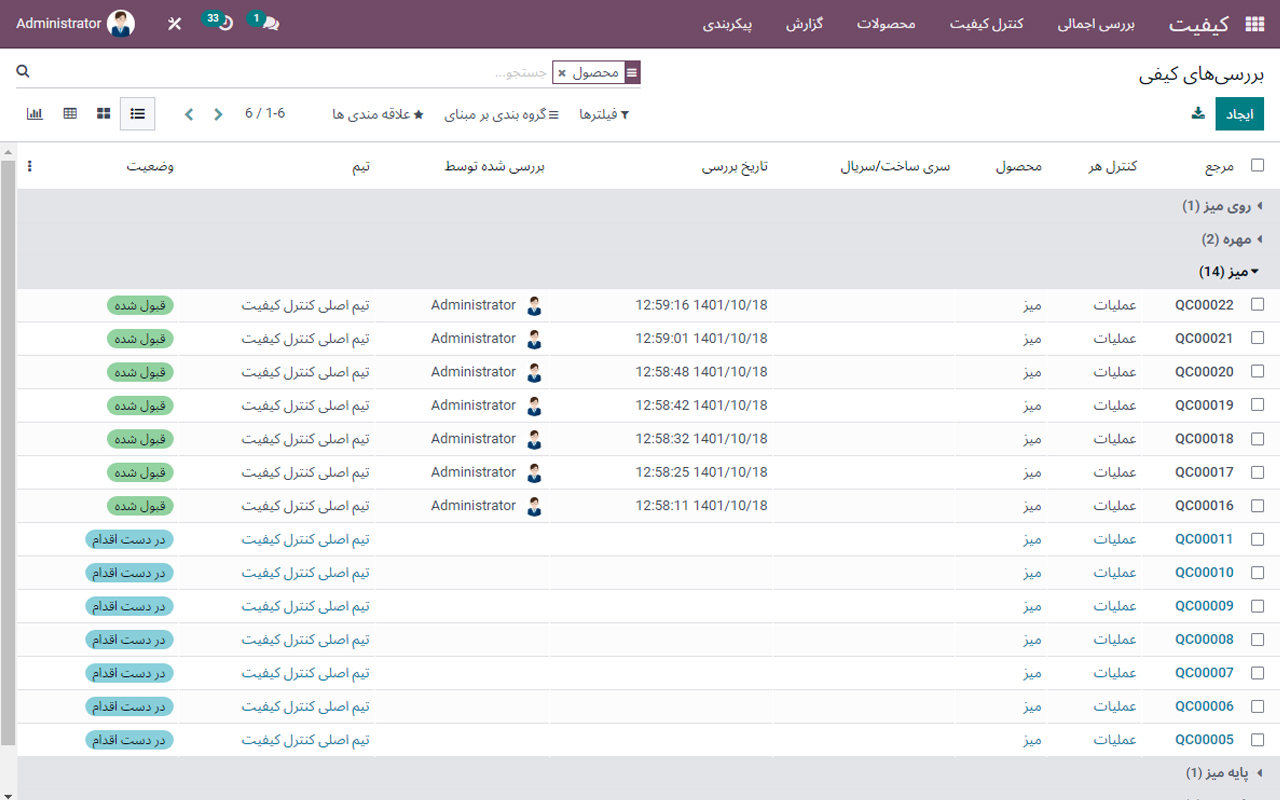 اودوو ایران اودوو فارسی quality control quality alert لرزیابی تولید برنامه ریزی تولید quality alert